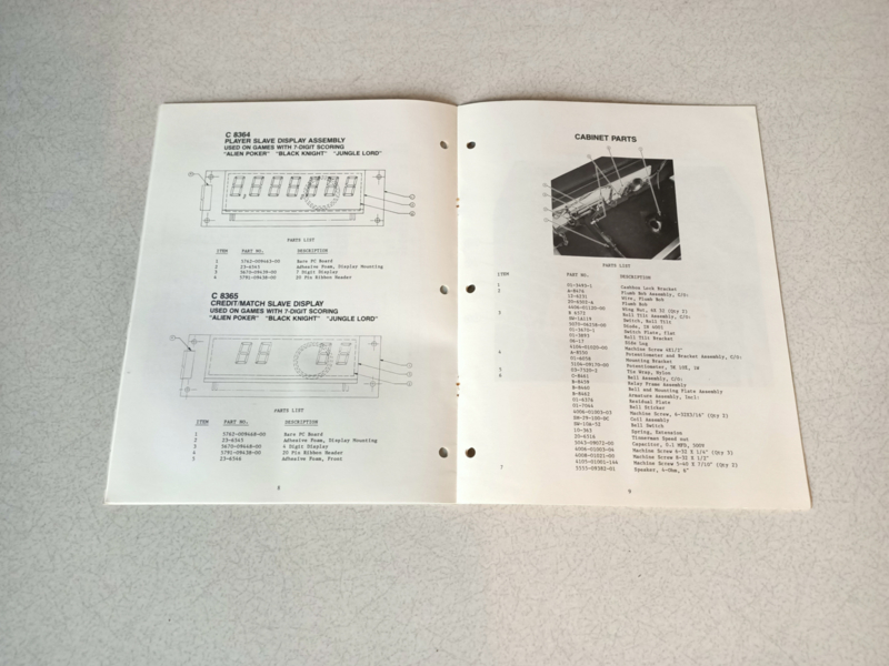 Parts Supplement Manual (Jungle Lord) Williams 1981