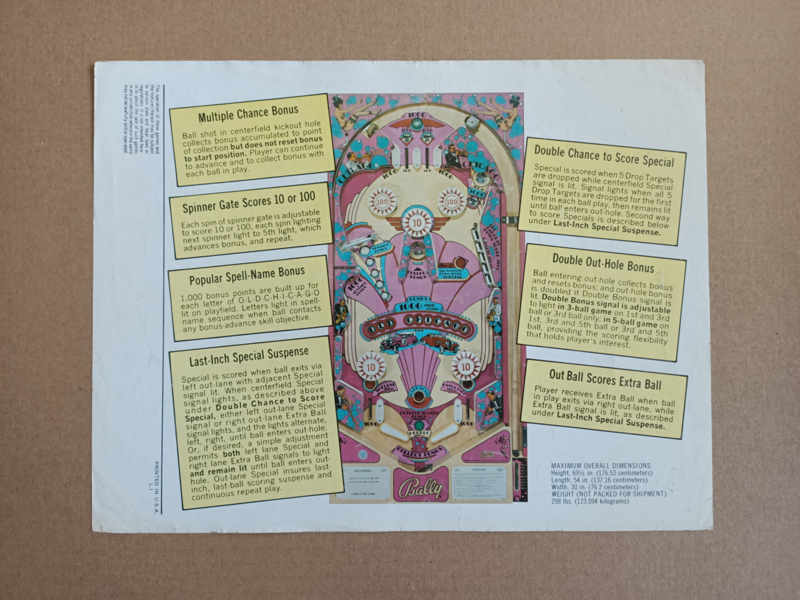 Flyer: Bally Old Chicago (1975) Flipperkast
