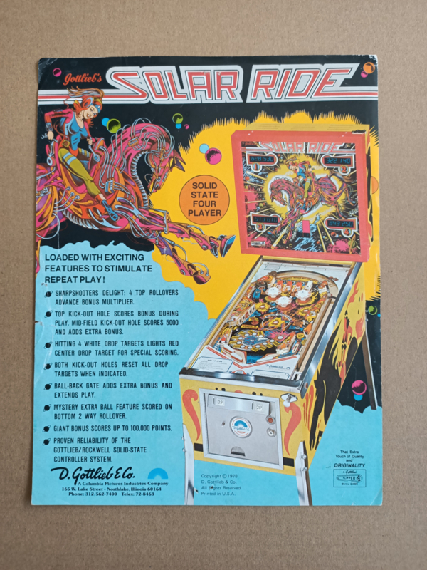 Flyer: Gottlieb Solar Ride (1979) Flipperkast