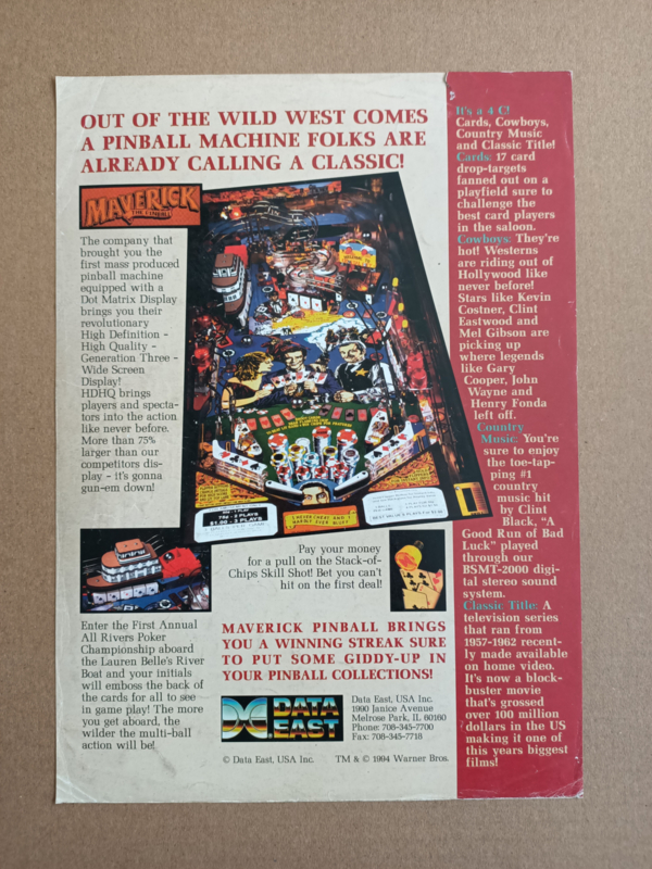 Flyer: Data East Maverick (1994) Flipperkast