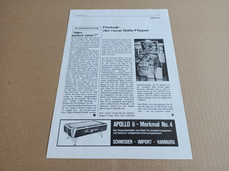 Artikel: Bally Fireball (1972) Flipperkast/ Duits