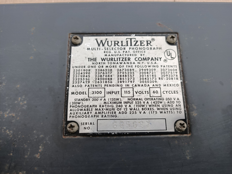 Back Panel (Wurlitzer 3100)