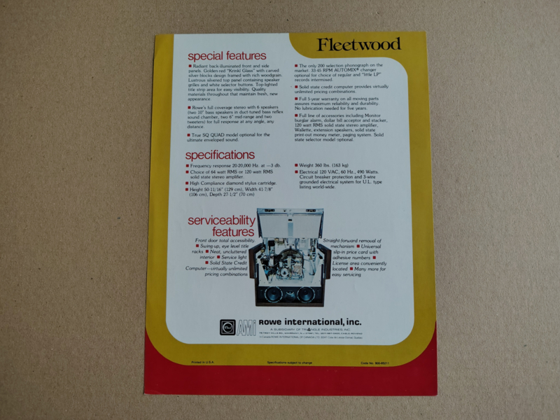 Flyer: Rowe-AMi R-80 / Fleetwood (1976)